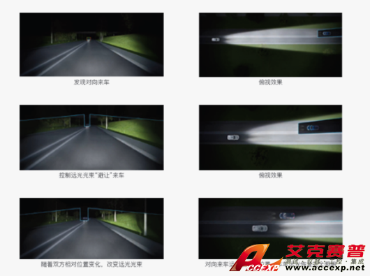 應位置的LED 調暗或者熄滅,避免對其他道路使用者造成眩目,保證駕駛安全性。