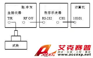 測試裝置由ACCEXP-590脈沖發(fā)生接收器、泰克數(shù)字示波器、超聲波探傷標(biāo)準(zhǔn)試塊、對比試塊和頻率自動(dòng)分析軟件等組成。