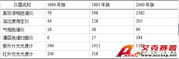 通用分析儀器仍然是農業常規分析測試的主體,附表2~6概述了5個方面的幾種主要分析儀器的應用狀況,該表是依據1999年以前的文獻歸納的,其中尚缺Icp發射光譜儀和原子熒光光譜儀的統計資料,但是從中仍可見出光譜儀和色譜儀是農業常規分析手段的主體地位??茖W儀器在我國農業科技發展和農業生產中有著廣闊的市場。