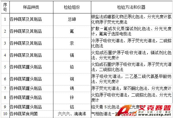 2.2.2 蔬菜及其制品檢驗標準中應用的分析方法與儀器