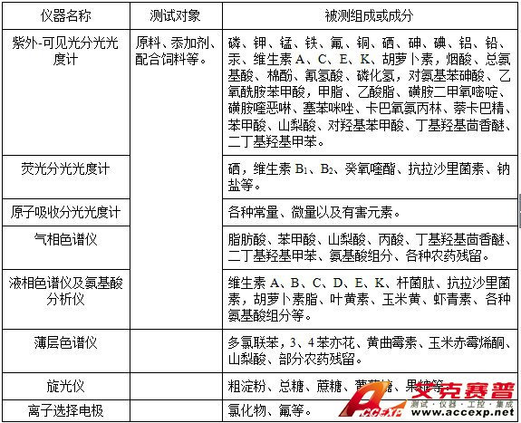 表6 分析儀器在飼料分析中的應用