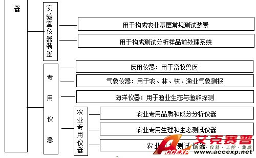 農業包括種植業、林業、畜牧業、漁業和農副產品加工業(國外多將農業與食品歸為一個領域)。與其他領域一樣,科學儀器和檢控儀器,作為信息技術的源頭,也必然是農業科技發展的“摧化劑”、農業現代化和可持續發展的“倍增器”。如今科學測試和檢控儀器已滲透到現代農業的各領域和環節(見附表1),既涉及動植物本體的性狀、生理、生態和環境因子及其產品品質的測試分析,也涉及產品在儲運、保鮮和加工中的檢控。過去有一種錯覺、多認為農業比較粗放,對儀器的技術要求不高、品種不多,其實農業各方面需分析測試和檢控的對象極廣泛,從動植物群體、個體到細胞、基因、分子,從有機到無機,從檢測生態環境到模擬甚至創造特定的生態環境,其對象多是生物體,而使用條件又比工業使用環境更惡劣的田間、現場。所以,在農口凡屬較深層次的科技項目和較大規模的精細農業生產,當今我國科學儀器的許多技術指標、性能、應用條件尚難滿足實際需求。但是,我國儀器儀表行業歷經波折和努力之后、還是取得了長足的發展。據我們對農業和食品業抽樣統計,按臺數計算、省級和地(市)級國產儀器占有率約占70%以上,而縣級部門幾乎都用國產儀器?,F以農業幾個方面和我國已公布實施的農業和食品業的幾個標準為例,概述幾種通用的分析儀器在農業和食品業應用狀況和法定地位,提出農業現代化對科學儀器的新需求,以及振興我國科學儀器、研發農業專用儀器具體建議。