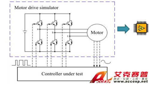 Accexp提供的其中一種解決方案是將模型實現到FPGA上去,這樣輸入信號的讀取、模型的積分、輸出信號的更新都全部在FPGA上實現,通過利用FPGA的并行性來縮短模型更新的時間,同時FPGA系統既沒有CPU與I/O板卡通信的額外開銷,也沒有實時操作系統(FPGA是純硬件實現)而引起的額外時間開銷,使得滿足幾個微妙這樣苛刻的實時限制成為可能。整個硬件在環測試的系統框圖如下: