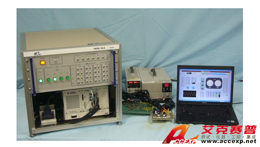 在本文介紹的案例中,我們主要就是利用這樣一個PXI 平臺實現了對受控對象的高速實時仿真,Accexp的工程師主要負責了電機驅動系統的建模,以及模型在PXI的FPGA板卡上的實現。 實際硬件測試系統如下:
