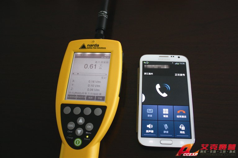 圖為電磁測試儀(www.whcts.com.cn/product/gaosiji/)測試電話輻射強度