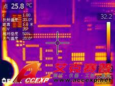 而且就前段時間,頻繁爆出的iPhone手機燙傷事件,也引起人們足夠的重視,這些燙傷在醫(yī)學(xué)界被認(rèn)定為“電輻燙傷”。也就是長時間使用手機,使其電磁輻射值累積增加,最后變成熱能,超過人體體溫,燙傷皮膚。磁場測試儀采用電子積分器原理,應(yīng)用不同的感應(yīng)線圈,能感應(yīng)各種磁場電輻的大小強度。在實驗中,艾克賽普公司提供的紅外熱像儀對手機PCB電路板及相關(guān)元器件進(jìn)行了檢測,就是用熱像儀分析電路板發(fā)熱高區(qū),其中高區(qū)功耗大,產(chǎn)生的輻射也就高。