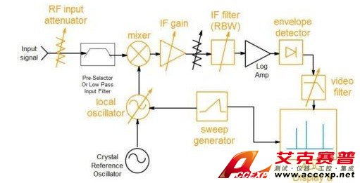 圖一 傳統(tǒng)掃描頻譜分析儀方塊圖