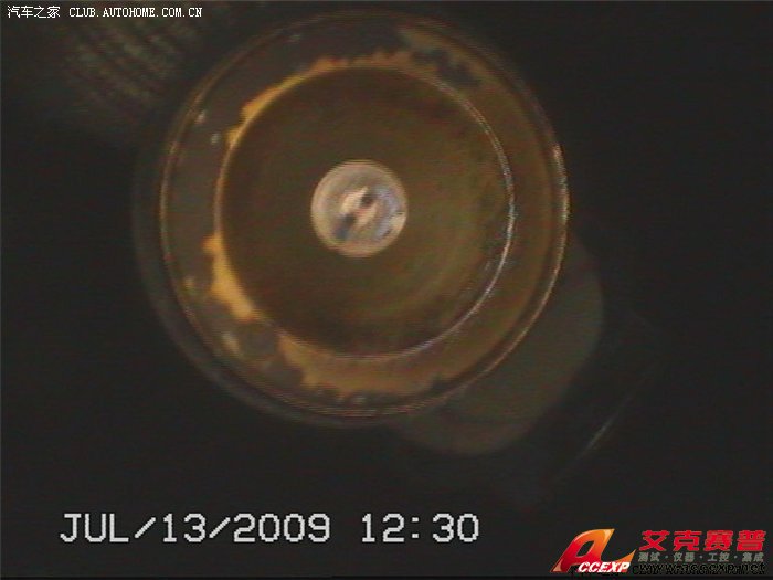 1#缸噴油嘴:可以清晰地看見中心的小孔,而且邊界清晰——干凈。邊緣的印漬的是汽油揮發后留下,不是積炭和積膠