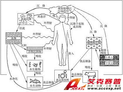在核事故的不同階段,公眾可能受到輻射照射的主要途徑也有差別。事故早期,主要是煙羽外照射和吸入煙羽中放射性物質(zhì)的內(nèi)照射;事故中期,地面沉積的放射性物質(zhì)外照射及攝入輻射污染的食品和水的內(nèi)照射,可能是主要照射途徑;事故晚期,主要照射途徑可能是受輻射污染的食品和水引起的內(nèi)照射。