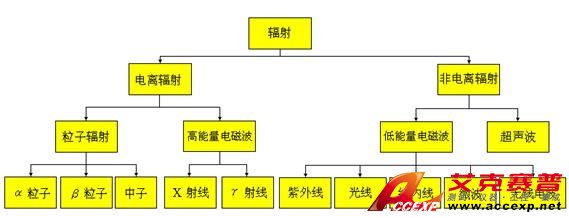 輻射一般分為電離輻射(或叫核輻射)和非電離輻射(或叫電磁輻射),α、β、γ、X射線等能直接或間接使物質(zhì)電離并產(chǎn)生離子對的輻射稱為電離輻射。非電離輻射是指能量比較低,并不能使物質(zhì)原子或分子產(chǎn)生電離的輻射,例如紫外線、紅外線、激光、微波、手機輻射等都屬于非電離輻射。