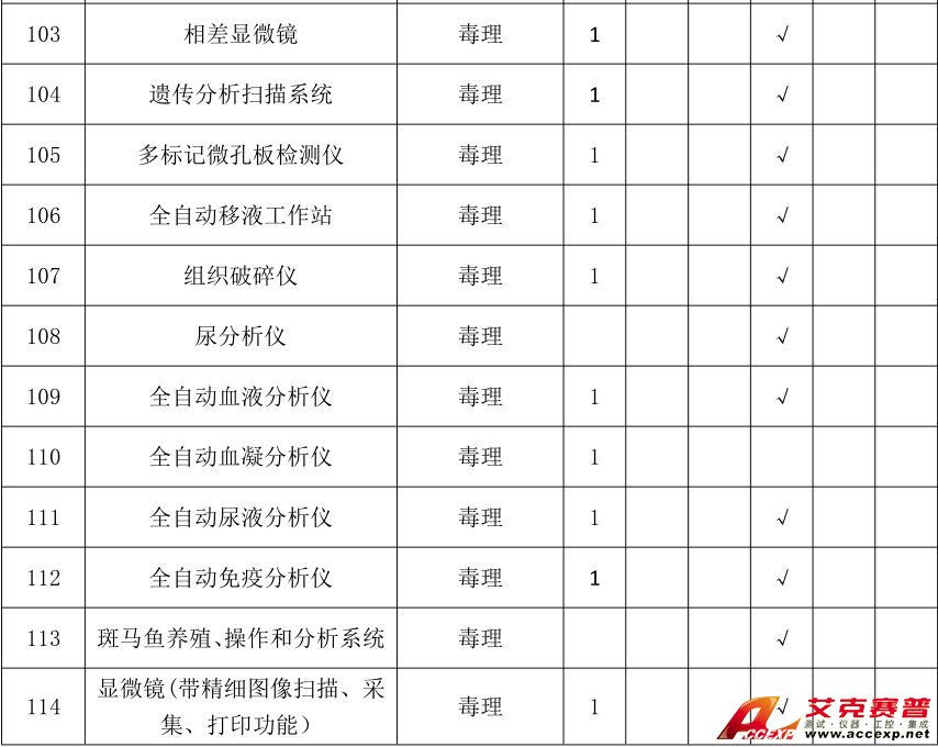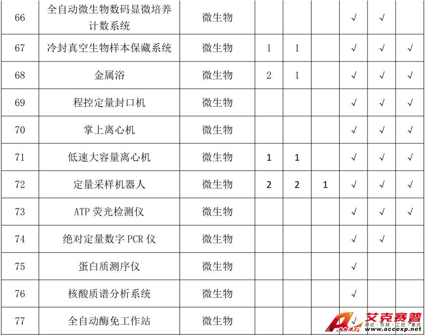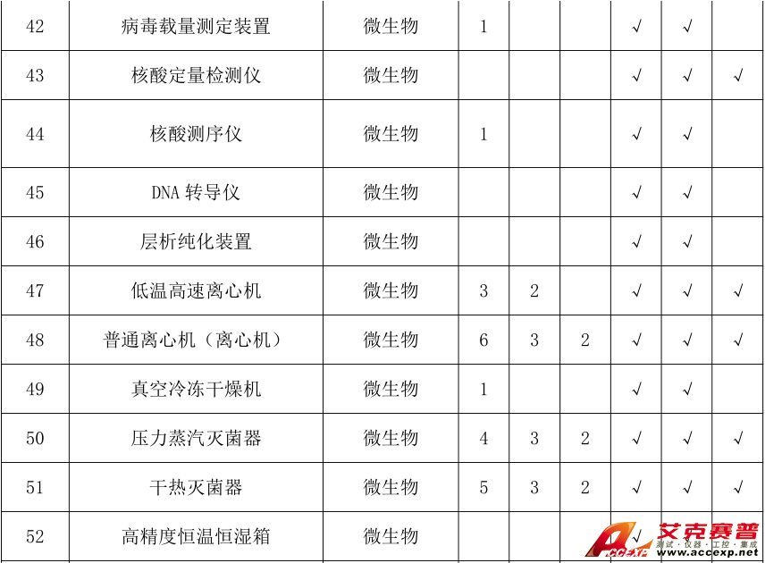 近期,國家衛(wèi)健委規(guī)劃司發(fā)布《國家衛(wèi)生健康委規(guī)劃司關(guān)于征求疾病預(yù)防控制中心建設(shè)標(biāo)準(zhǔn)(征求意見稿)意見的函》,就疾病預(yù)防控制中心建設(shè)標(biāo)準(zhǔn)征求意見。該標(biāo)準(zhǔn)包含了疾控中心實驗室選址與規(guī)劃布局、建筑面積指標(biāo)、建筑標(biāo)準(zhǔn)、儀器設(shè)備及相關(guān)指標(biāo)等多項內(nèi)容。標(biāo)準(zhǔn)在《第六章 儀器設(shè)備及相關(guān)指標(biāo)》中要求省級、市級、縣級疾病預(yù)防控制中心根據(jù)所承擔(dān)的專業(yè)類別、工作類型、職責(zé)和任務(wù)應(yīng)配備的專業(yè)儀器設(shè)備參照附錄 B 執(zhí)行。國家級疾病預(yù)防控制中心的儀器設(shè)備,根據(jù)職能和需求配備。在《附錄 B 疾控預(yù)防控制中心實驗室主要儀器裝備配備標(biāo)準(zhǔn)》列出了需配備的生命科學(xué)、物性測試、分析儀器等320類儀器。