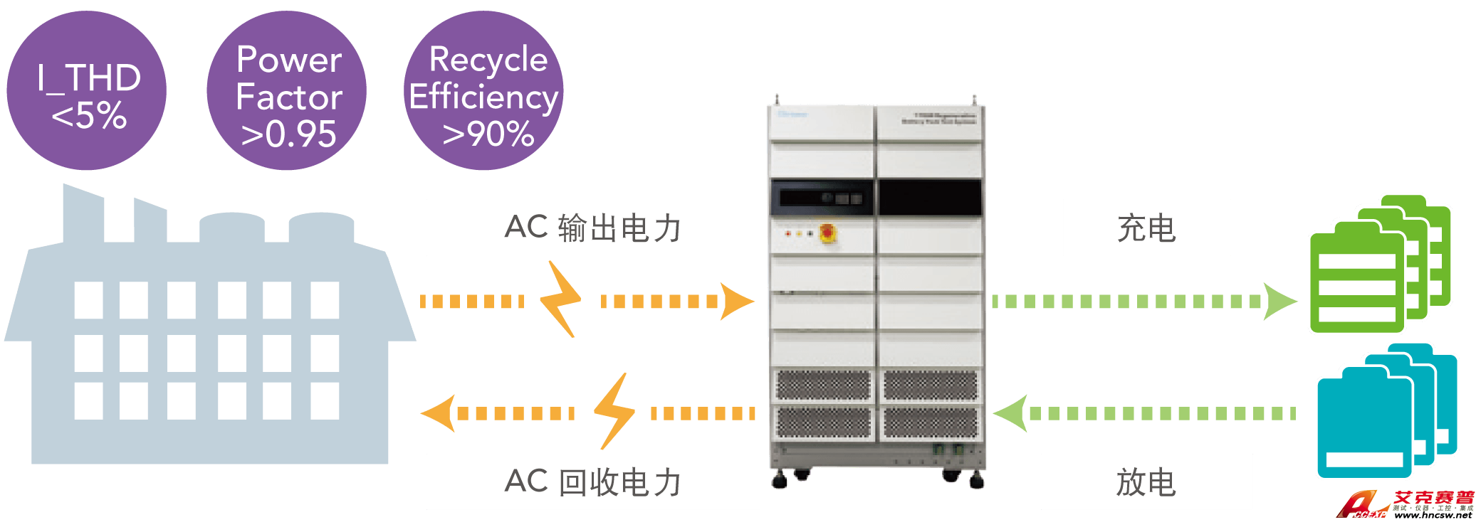 艾克賽普 能源回收式電池模組測試系統解決方案17040主要特色: