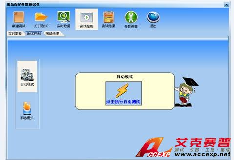 測試模式說明:自動模式與手動模式。自動模式可自動記錄參數值,在滿足基頻電流值小于1%額定電流值后,切斷觸發開關,自動記錄顯示3秒的波形,自動計算并直接顯示出保護時間。手動模式下,需要手動切斷開關,在出現保護波形時Hold(保持)在軟件界面上,再完成保護時間的測量。