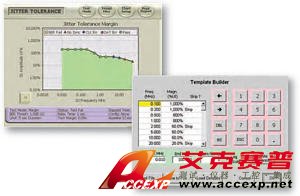 許多標準要求測試在不同頻率、不同幅度、不同調制的SJ 對Rx 的影響。BERTScope 內建的抖動容限功能通過用戶自定義的容限模板,自動的完成這項測試。同時,BERTScope 還提供了許多標準的測試庫供用戶使用。