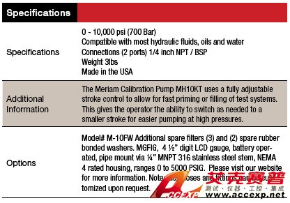 美國(guó) Meriam MH-10KT系列液壓校準(zhǔn)泵的詳細(xì)介紹