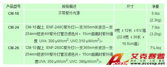 CM-26重量輕,尺寸小,因而便攜性好。ENF-260C紫外燈為UL 、CSA 及CE認可。