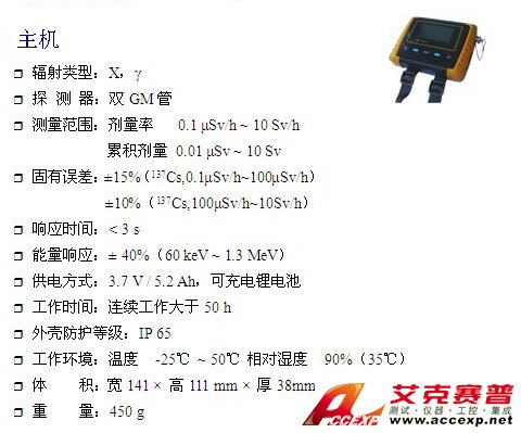 ACCEXP-MPR200多探頭輻射測量儀是一款便攜式的放射性探測儀,可對α、β、γ、X放射性水平進行測量。