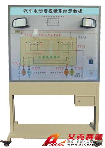 電動后視鏡與控制開關、故障設置系統(tǒng)、電源、彩色原理與結構圖、控制面板、可移動臺架、使用說明書及實訓指導書等。