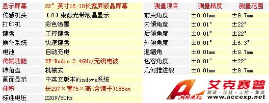 | 備有一萬多種定位車型資料庫,還可自行增加新車種資料,或需廠家升級 | 完整的定位測量系統,包含(S.A.I,K.P.I)主鎖內傾角、后傾角、外傾角、總前束、獨立前束、退縮角、幾何推進線、恒定值等 | |