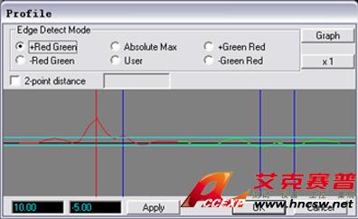 在一個(gè)采樣域內(nèi),可能存在有多個(gè)邊界信號(hào),NEXIV 允許客戶(hù)根據(jù)自身的需要來(lái)選擇所需檢出的邊界; 客戶(hù)可以在灰度變化率顯示窗內(nèi),指定邊界檢出的條件; 當(dāng)工件圖象的對(duì)比度較低時(shí),客戶(hù)還可以通過(guò)調(diào)整邊界變化率檢出的閾值,來(lái)提高邊界的檢出性能。