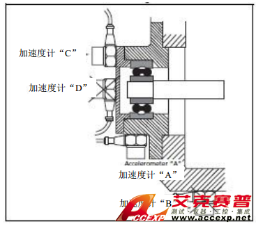 加速度計的安裝方式使得所需測量方向與主軸靈敏度吻合。加速度計對于橫向方向中的振動有點敏感,但這通常可被忽略,因為最大橫向靈敏度通常僅有主軸靈敏度的百分之幾。進行振動測量測試的原因通常決定加速度計的位置。在下圖中,其目的是監(jiān)控軸和軸承的條件。在該實例中,應(yīng)對加速度計進行定位,以保持軸承振動的直接路徑。因此,加速度計 “A” 將檢測主要來自軸承而不是機器其他部分的振動信號,而加速度計 “B” 將接收通過關(guān)節(jié)的傳輸改變的軸承振動, 混合來自機器其他部分的信號。同樣,加速度計“C”被安裝在比加速度計“D”更加直接的路徑上。