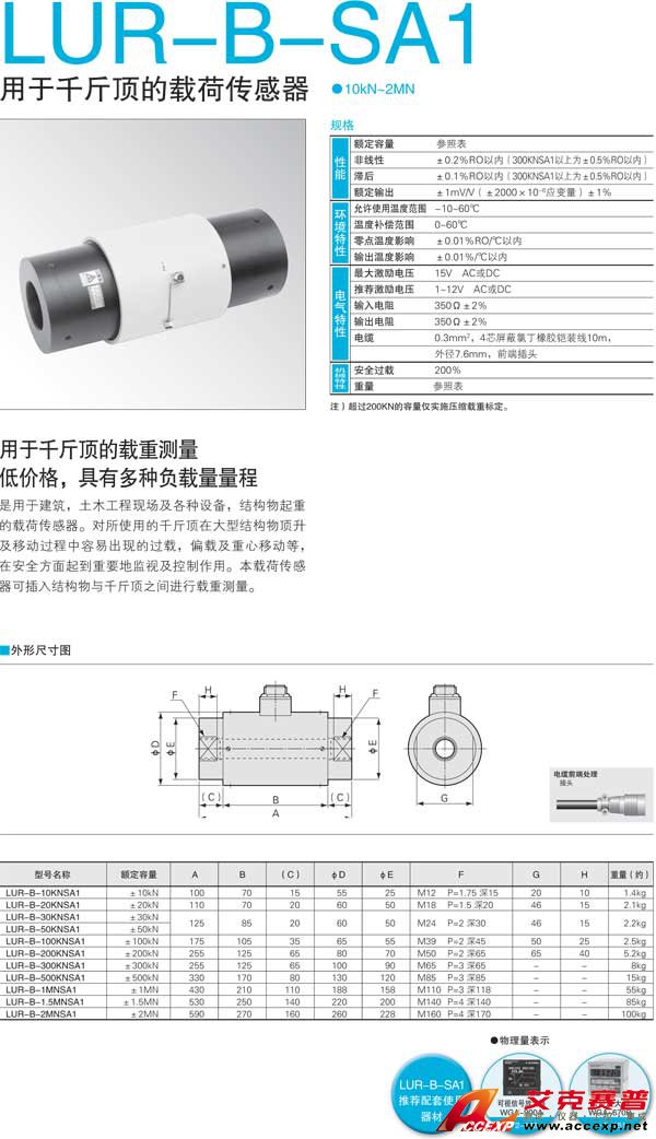 KYOWA LUR-B-SA1 用于千斤頂的載荷傳感器