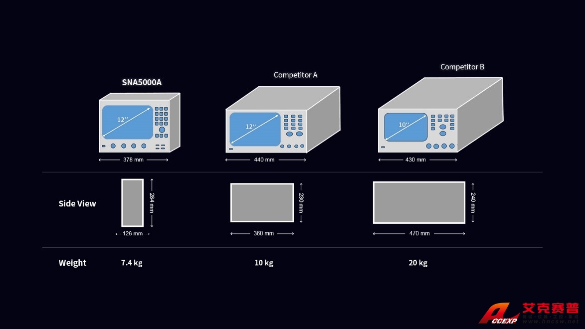 不管是在研發還是在現代化的生產線,區別于傳統笨重的矢量網絡分析儀,SNA5022A 超前的外觀設計都能為工程師或者產線節省大量的桌面空間。