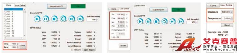 光伏仿真軟件支持四點(diǎn)法在線切換功能,在軟件運(yùn)行過程中,用戶也可以動態(tài)調(diào)整Voc、Vmp、Isc、Imp、照度和溫度曲線參數(shù),曲線將根據(jù)新的參數(shù)而實時調(diào)整,使測試更為精準(zhǔn)。