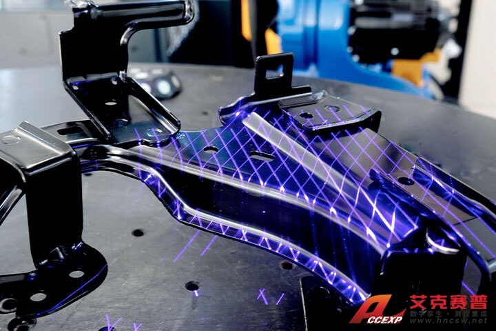 采用純藍光和同步追蹤光學技術,掃描速率高達1,900,000次測量/秒,精度可達0.025 mm,精度不受機器人、導軌等因素影響,實現高效靈活的自動化制造工藝。