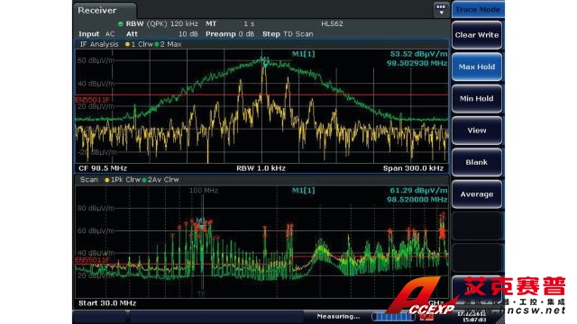 R&S ESRP EMI 測試接收機(jī)專用于開發(fā)階段的診斷測量和預(yù)一致性測量,以便產(chǎn)品準(zhǔn)備好接受最終的認(rèn)證測試。在 10 Hz 至 7 GHz 的頻率范圍內(nèi),接收機(jī)使用傳統(tǒng)的步進(jìn)式頻率掃描或基于 FFT 的時(shí)域掃描(可大幅加快測量)測量電磁干擾。R&S ESRP 也可作為功能全面、強(qiáng)大的信號與頻譜分析儀,并適用于實(shí)驗(yàn)室應(yīng)用。R&S ESRP 配備觸摸屏和直觀的菜單結(jié)構(gòu),易于在任何模式下進(jìn)行操作。