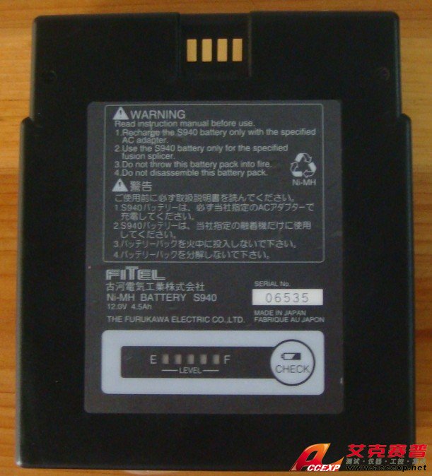 FITEL古河 S940 電池技術參數: 12V, 4500 mAh, 54W , Ni-MH電池,適用于古河S176CF/CR,S199M12,S199S光纖熔接機。